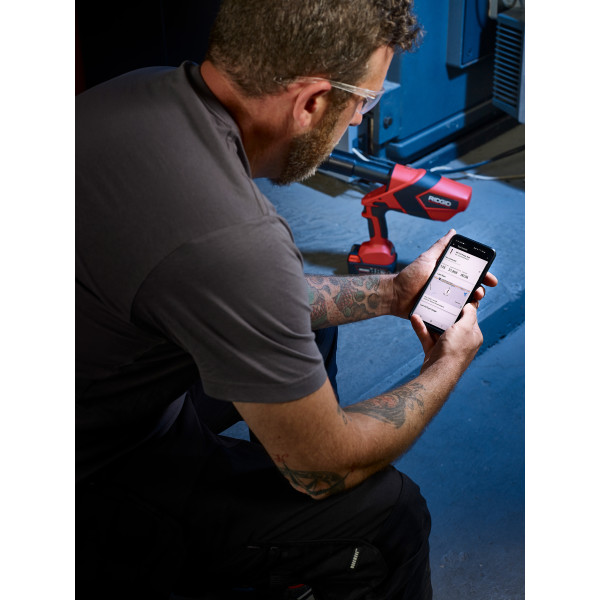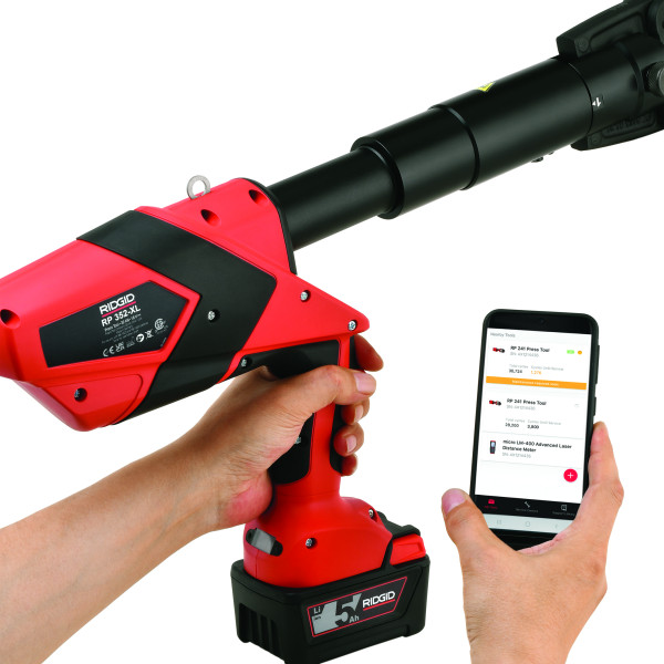 RP 352-XL má funkciu Press-CHECK! Senzor tlaku a priamo monitoruje každý jeden lisovací cyklus a varuje v prípade zlyhania. Okrem toho RP 352-XL poskytuje používateľovi informácie o používaní prostredníctvom integrovanej OLED obrazovky alebo mobilného zariadenia, ktoré dokáže byť pripojené k RP 352-XL cez Bluetooth a bezplatnú aplikáciu RIDGID.Vlastnosti: