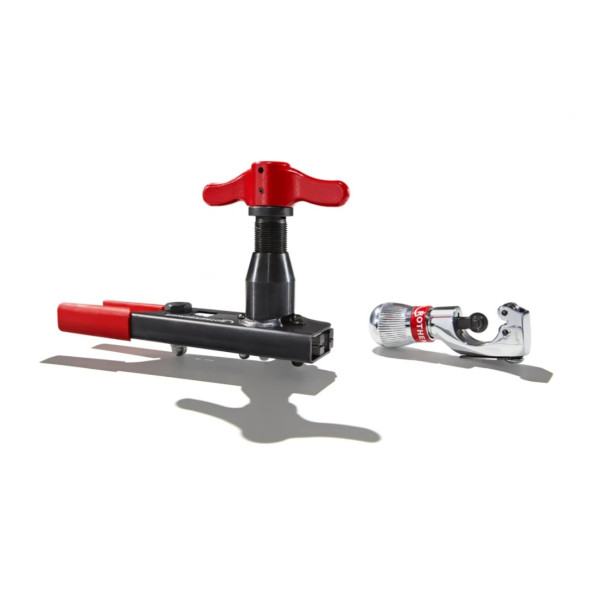 Sada (1000000231) obsahuje: ROFLARE REVOLVER colový, matrice Ø 1/4, 5/16, 3/8,1/2, 5/8 a 3/4“ , orezávač rúr ROTRAC 28 PLUS CHROM limitovaná edícia (1000000046) v kufríku ROCASE.