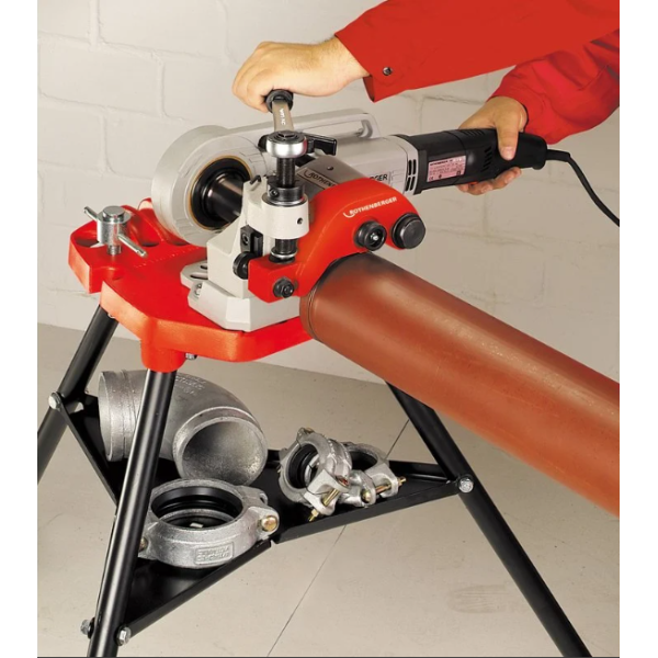 Prenosný valcový drážkovač určený na oceľové rúry do priemeru Ø 6″ (168 mm). Umožňuje rýchle a presné vytváranie drážok na štandardných aj tenkostenných oceľových rúrach.